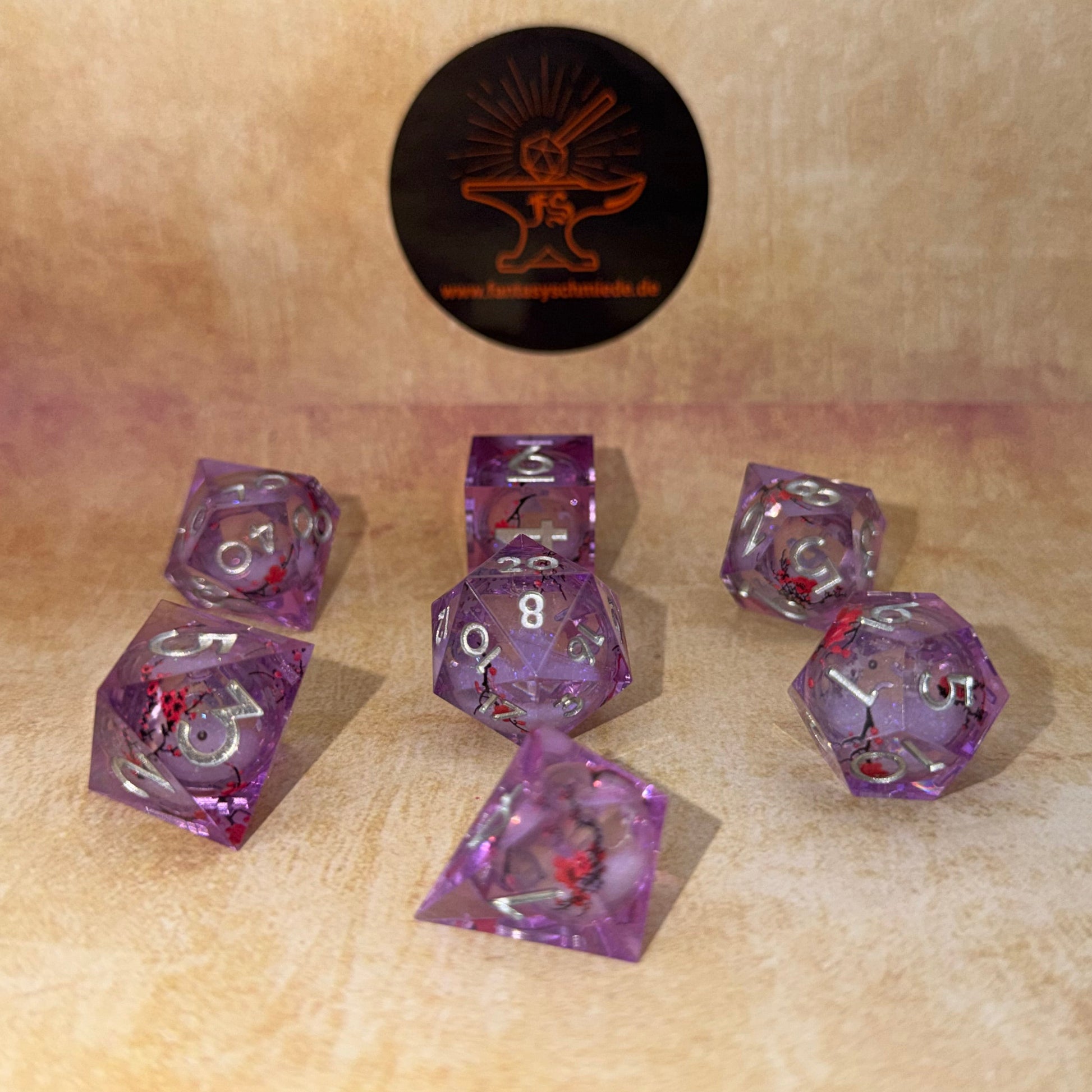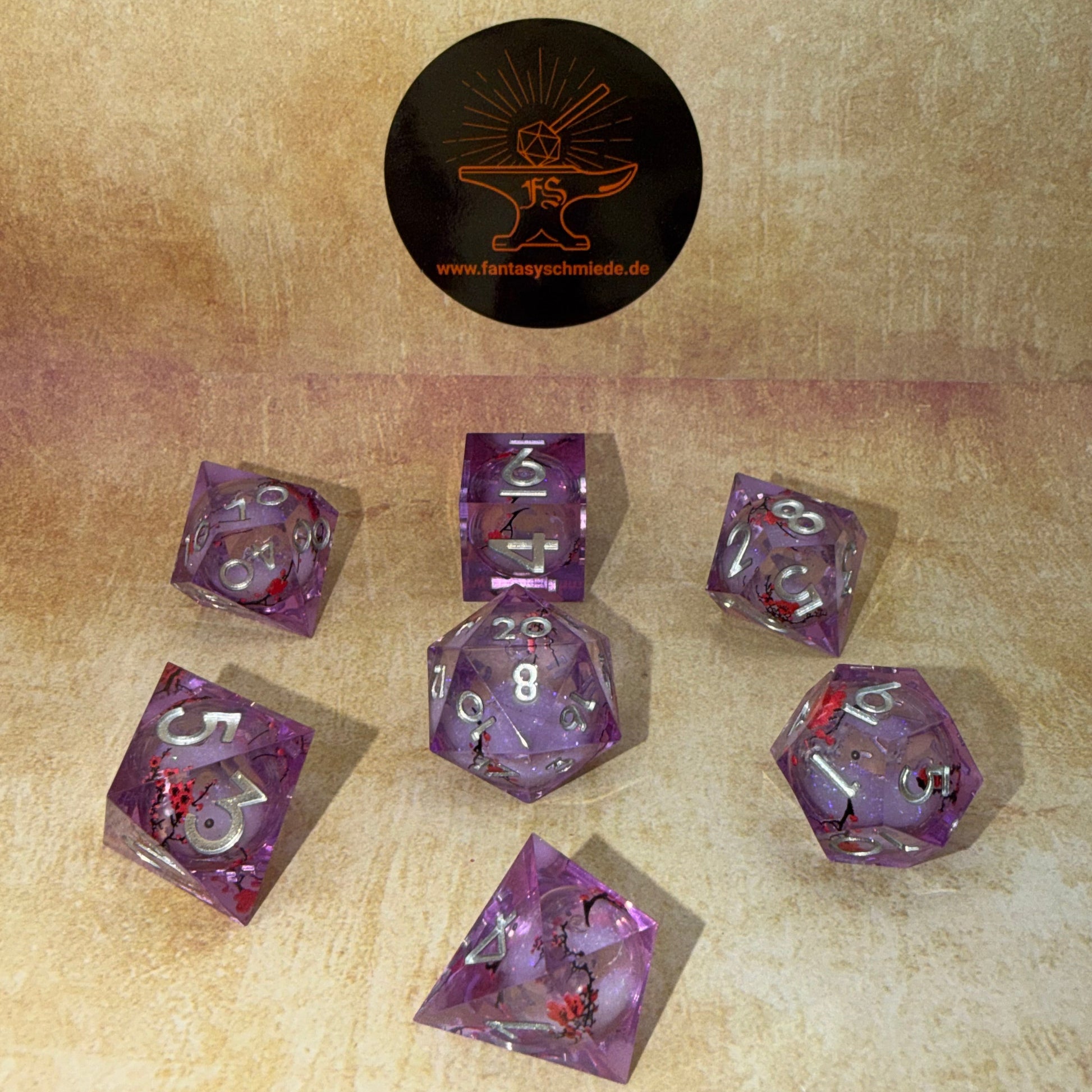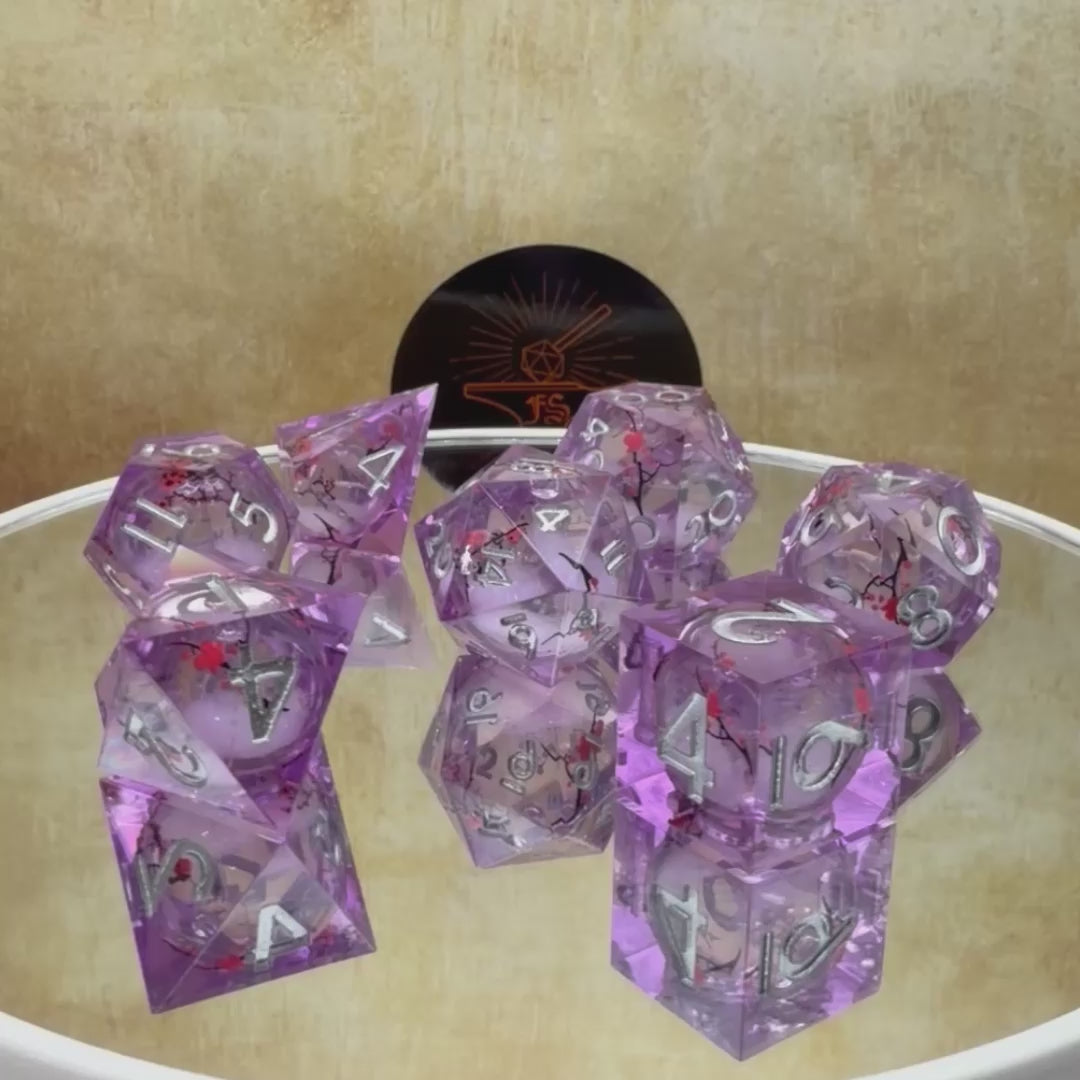 The liquid core creates a captivating depth effect, while the finest silver glitter adds a sparkling highlight to each cube – like dewdrops on plum blossoms. Each cube is like a small work of art, bringing the magic of nature into your role-playing games.