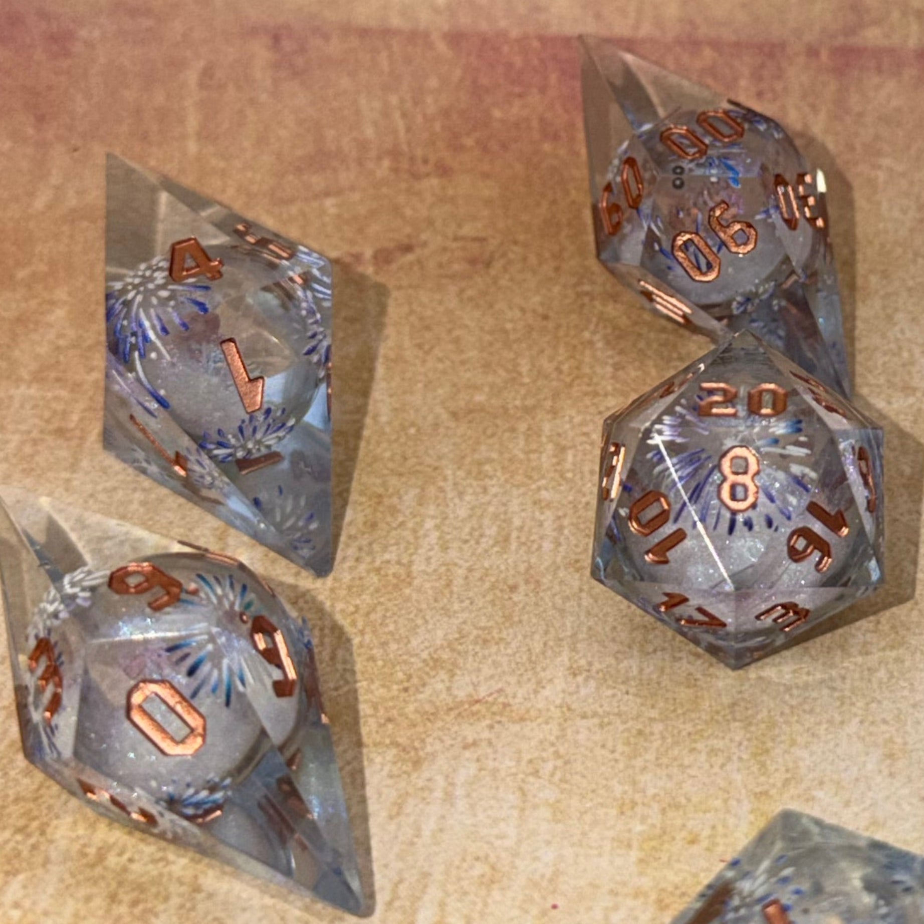 A dice set for characters who find strength in serenity – druids, frost mages, or silent guardians of ancient secrets.