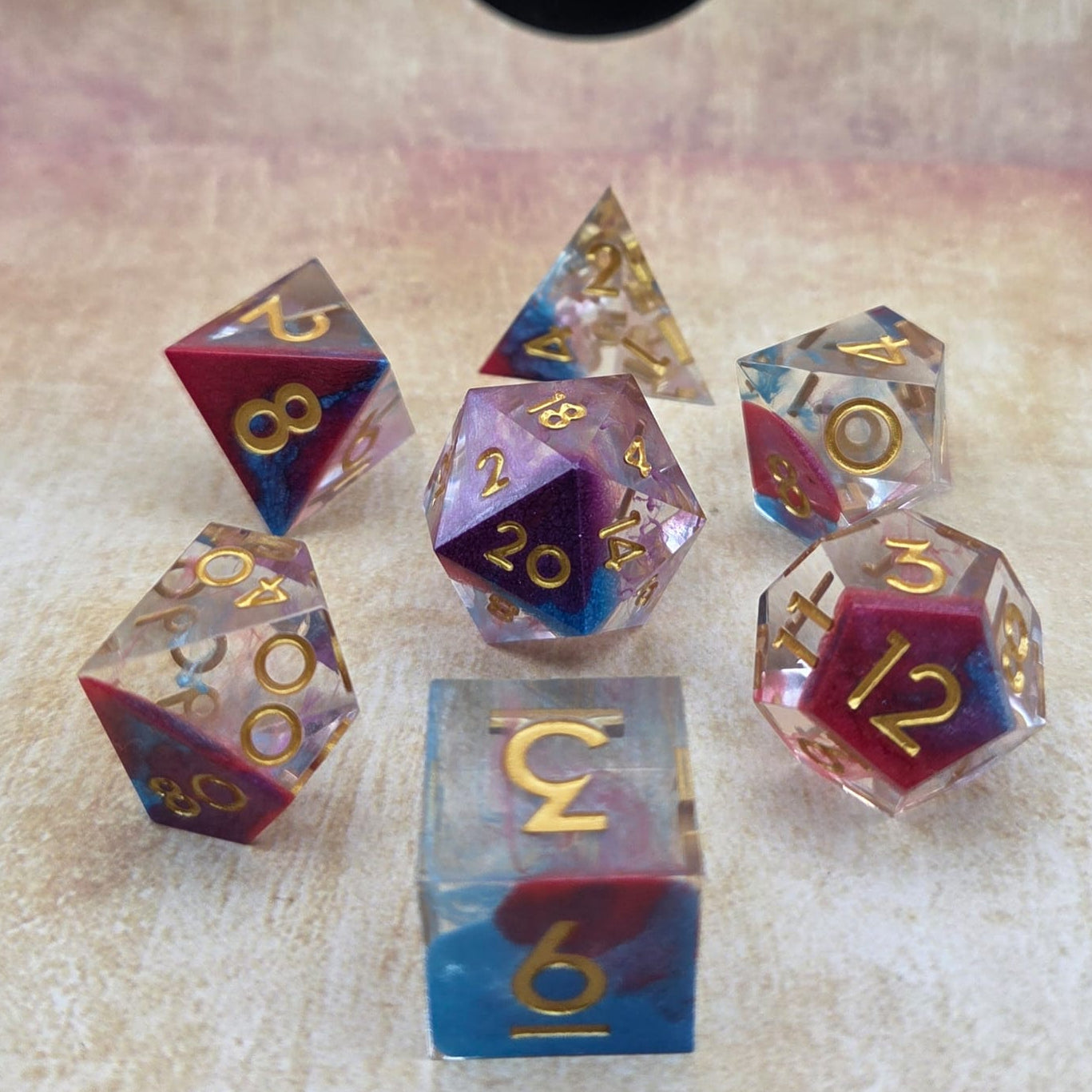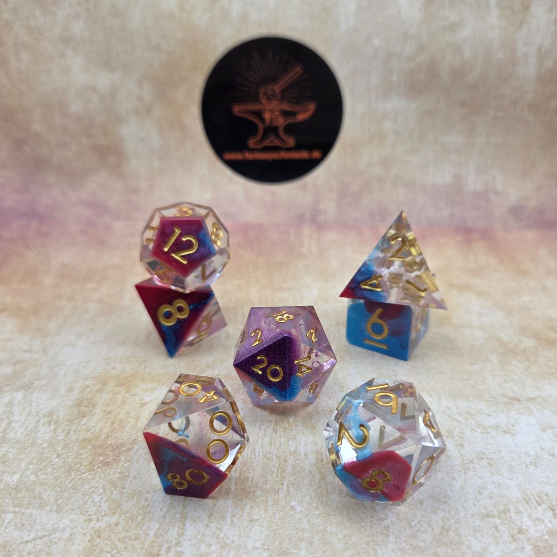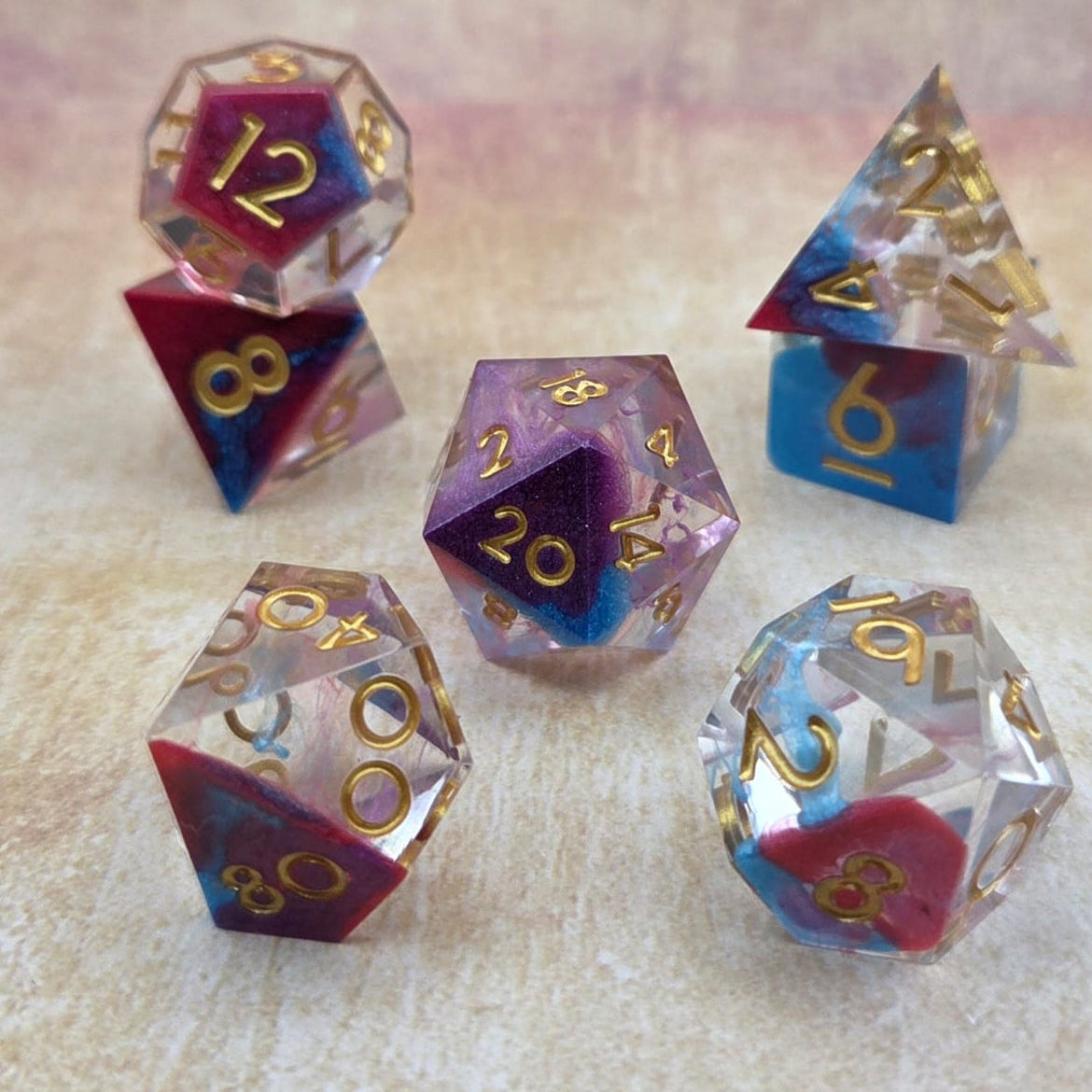 In jedem dieser Würfel verschmelzen Lila, Blau und Rot zu einem schimmernden Farbenspiel, durchzogen von feinem Glitzer, der wie flüssiges Mana wirkt.