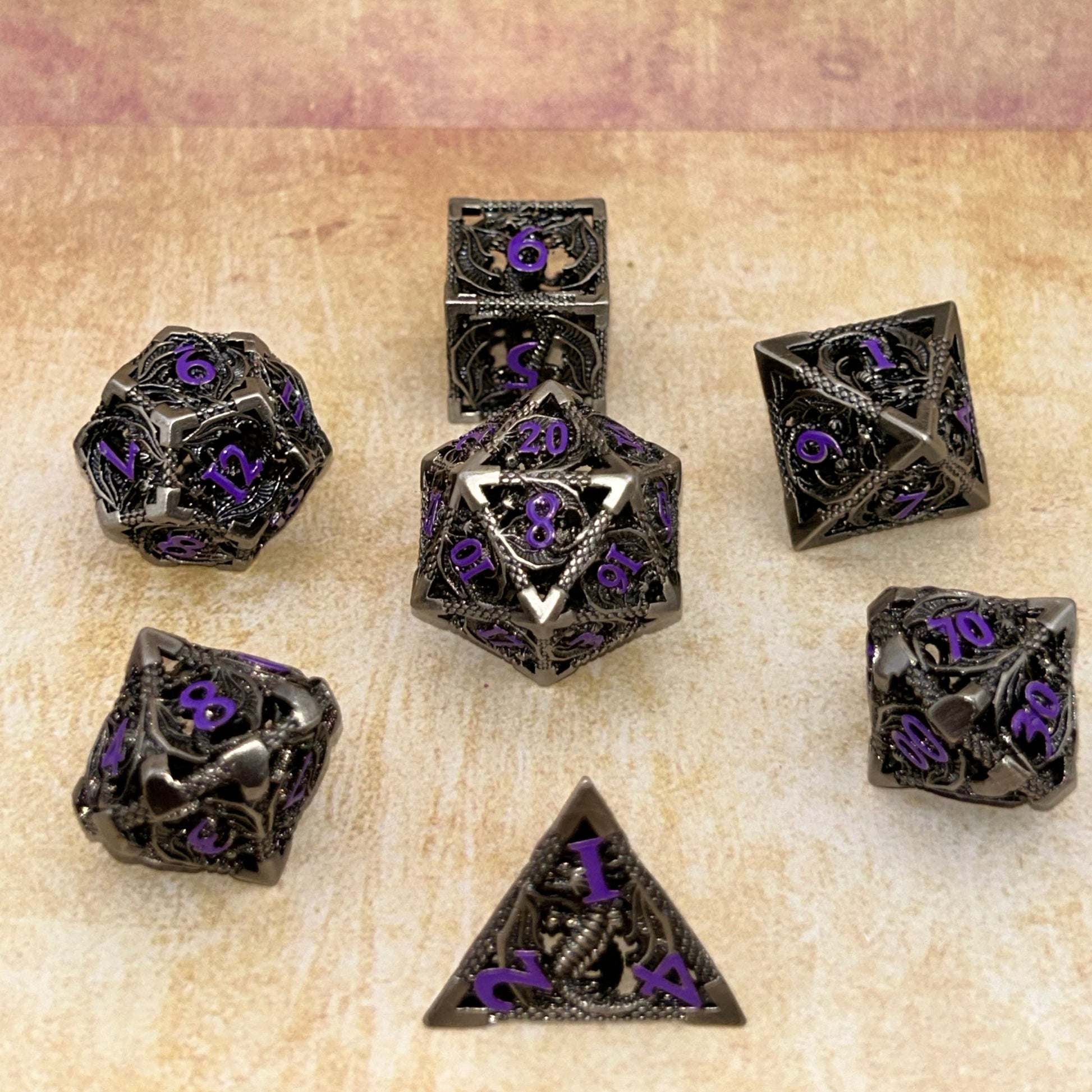 Schwarze Drachenflügel erstrahlen in goldenen Zahlen, die in diesem edlen Würfelset den Glanz alter Legenden widerspiegeln. Perfekt für Abenteuer voller Magie und Drachenmythen. Lasse das Schicksal durch die Flügel der Macht entscheiden!