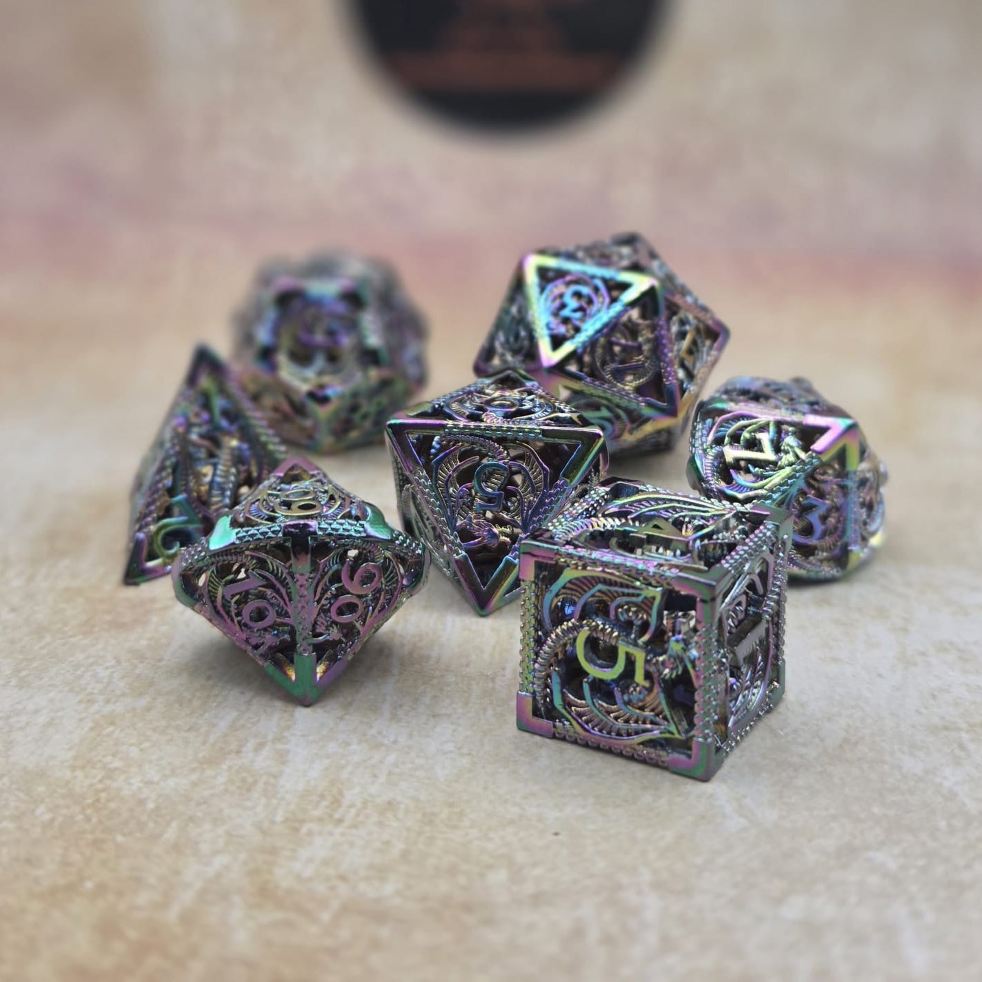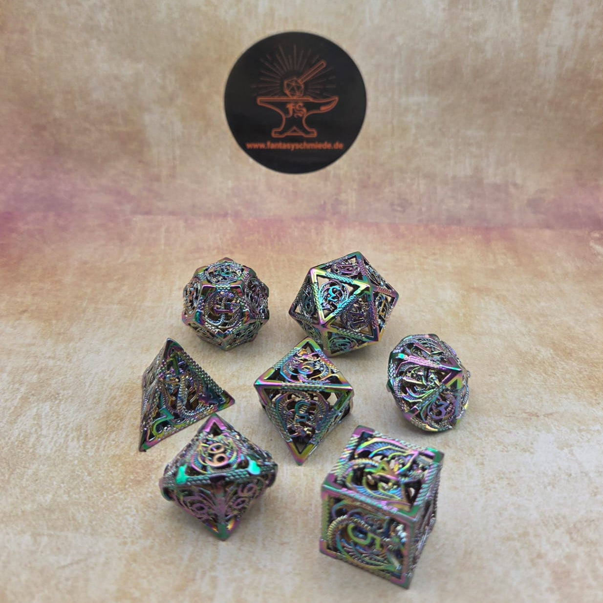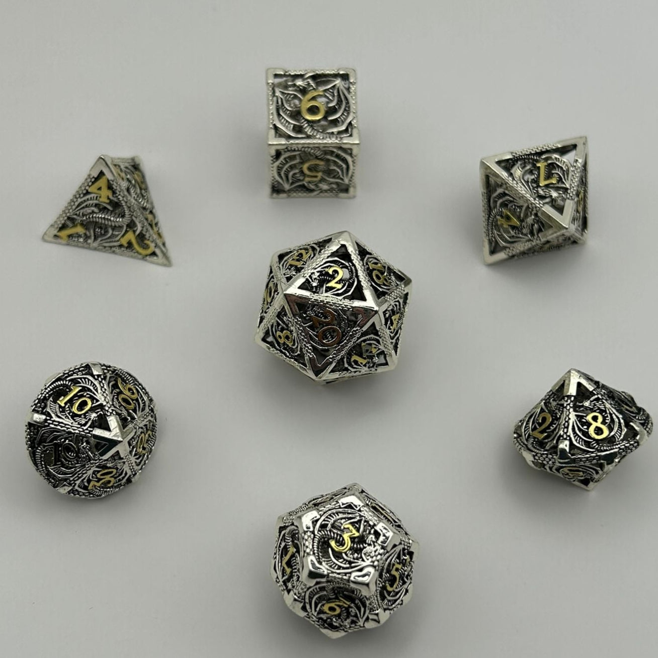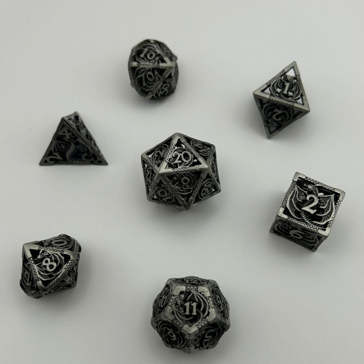 Schwarze Drachenflügel erstrahlen in goldenen Zahlen, die in diesem edlen Würfelset den Glanz alter Legenden widerspiegeln. Perfekt für Abenteuer voller Magie und Drachenmythen. Lasse das Schicksal durch die Flügel der Macht entscheiden!