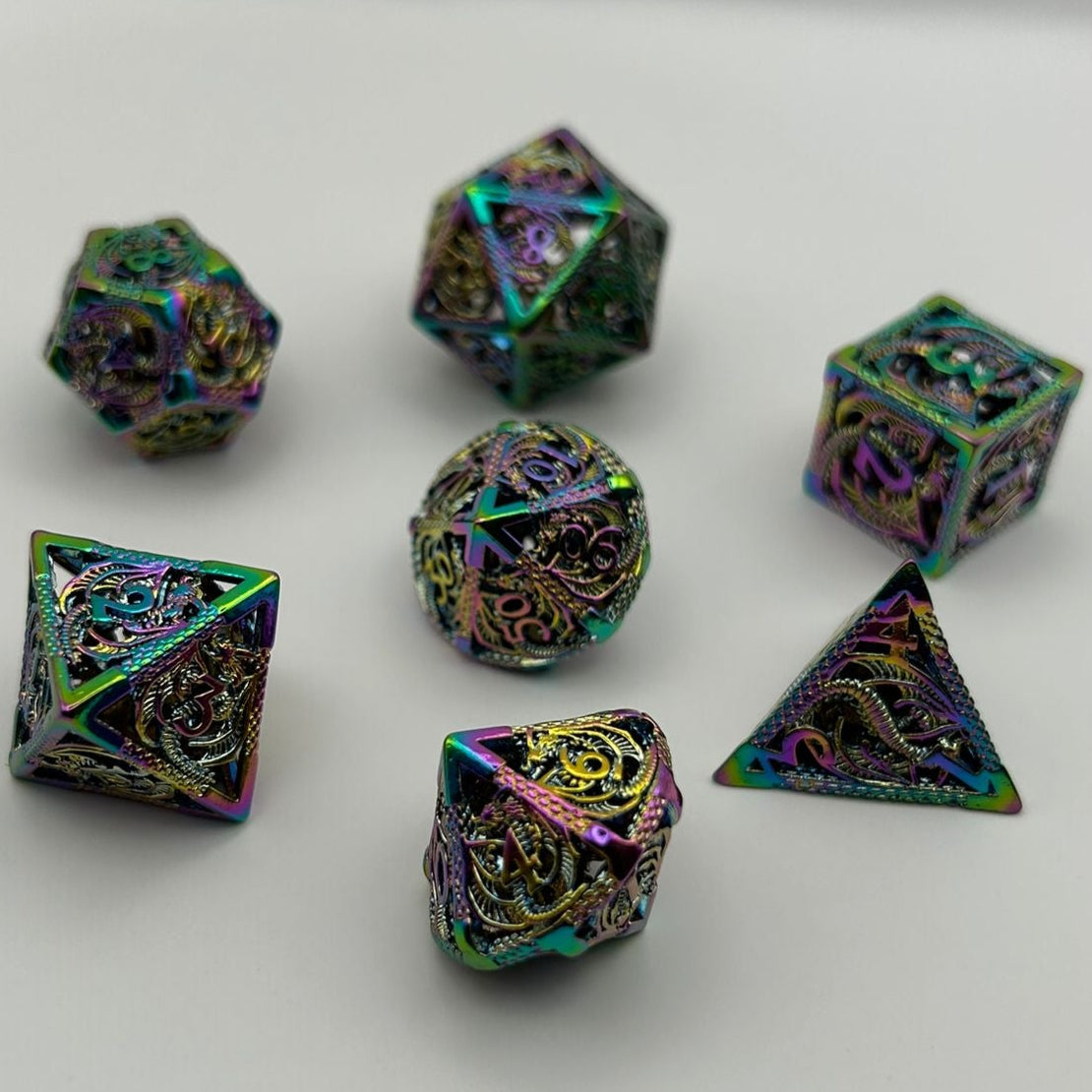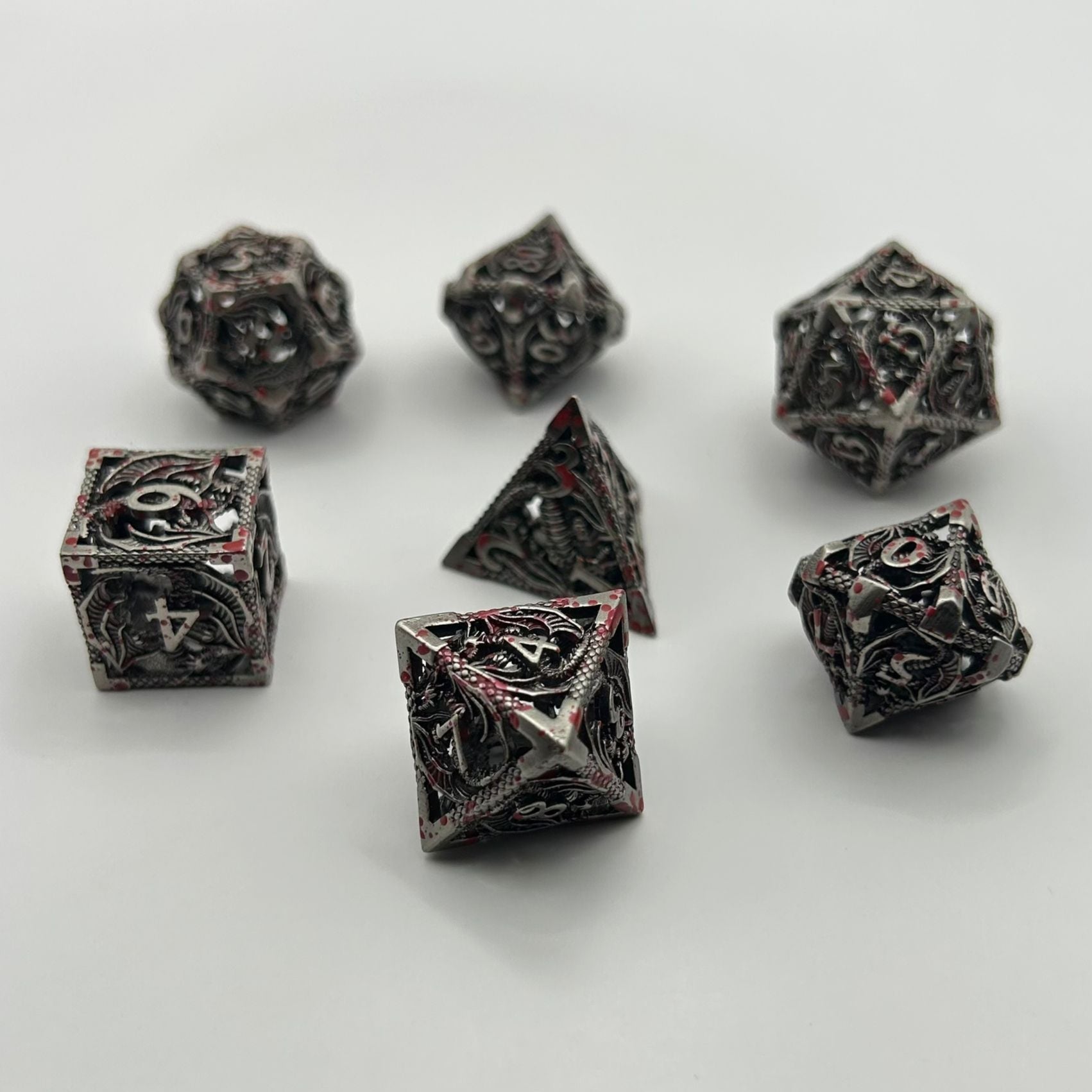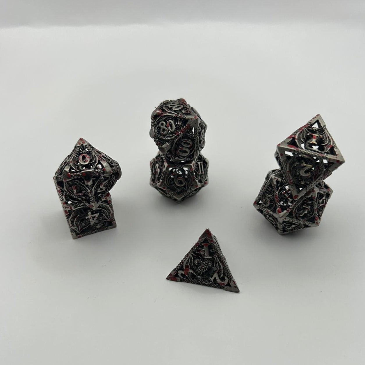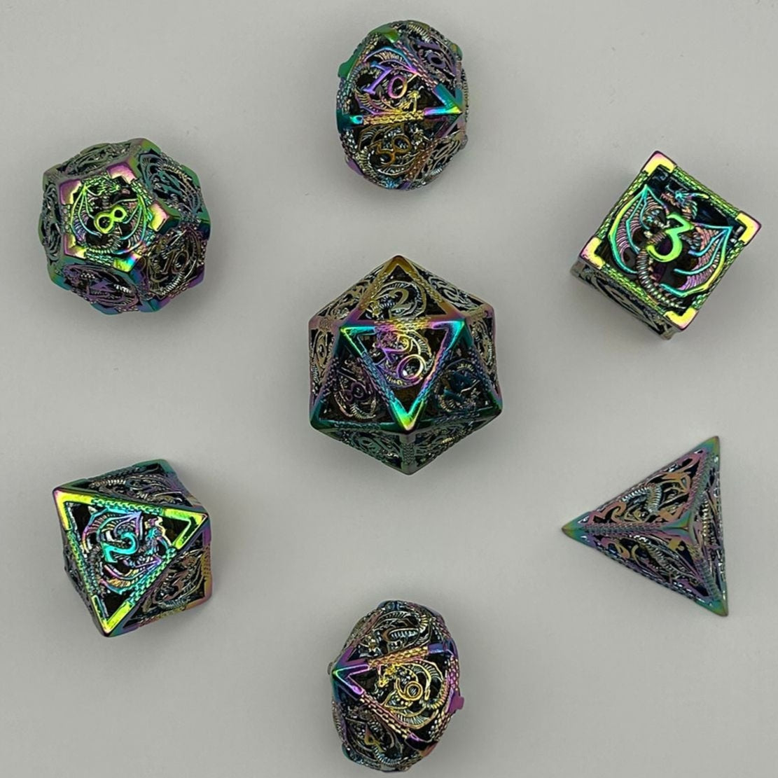 Schwarze Drachenflügel erstrahlen in goldenen Zahlen, die in diesem edlen Würfelset den Glanz alter Legenden widerspiegeln. Perfekt für Abenteuer voller Magie und Drachenmythen. Lasse das Schicksal durch die Flügel der Macht entscheiden!