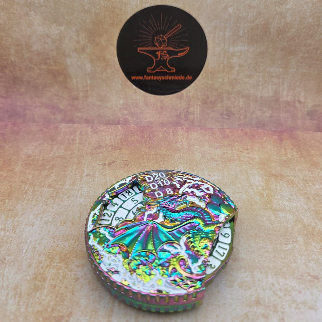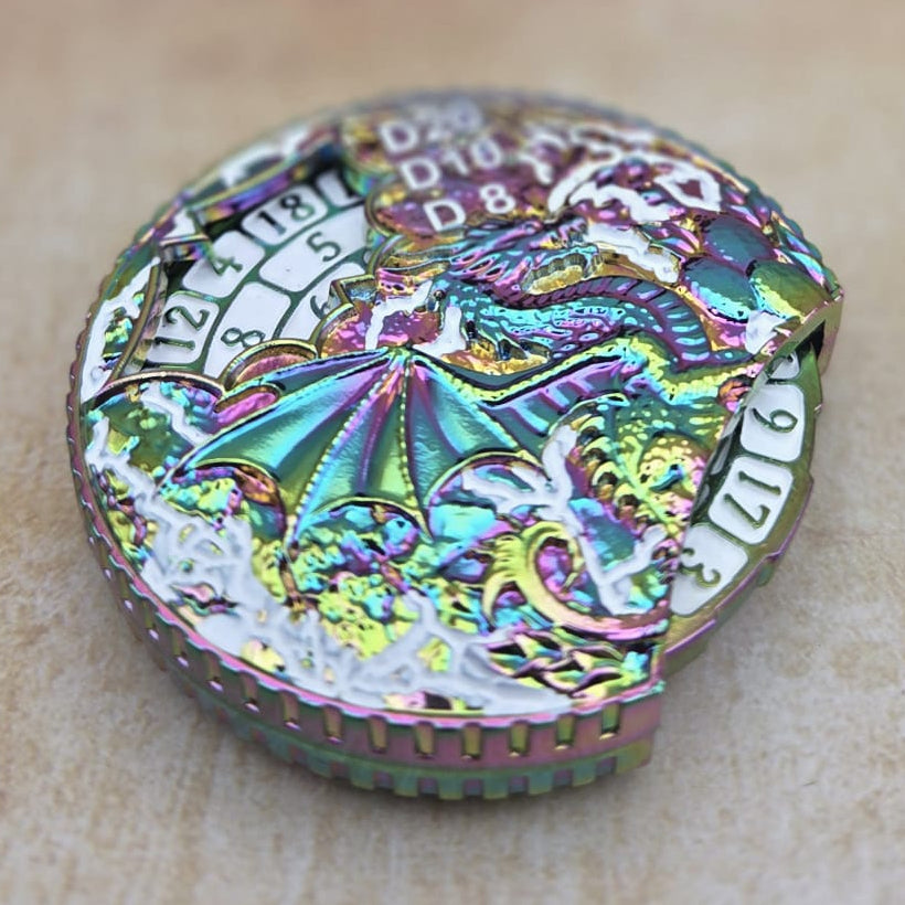 Die Vorderseite trägt die Symbole des W4, W6 und W12, während die Rückseite die Runen des W8, W10 und W20 offenbart. So begleitet dich der Dragonspawn bei jedem Wurf – vom ersten Funken bis zum finalen Schlag.