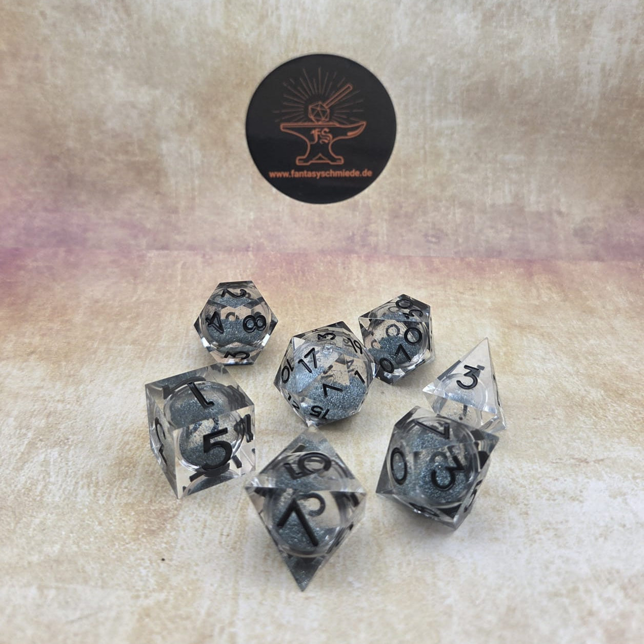 Die schwarzen Zahlen stehen in scharfem Kontrast zum glitzernden Inneren – wie Runen auf obsidianem Stein, klar und unerbittlich. Jeder Wurf mit Drowlight ist ein Flüstern aus der Tiefe – leise, tödlich, und voller Macht.