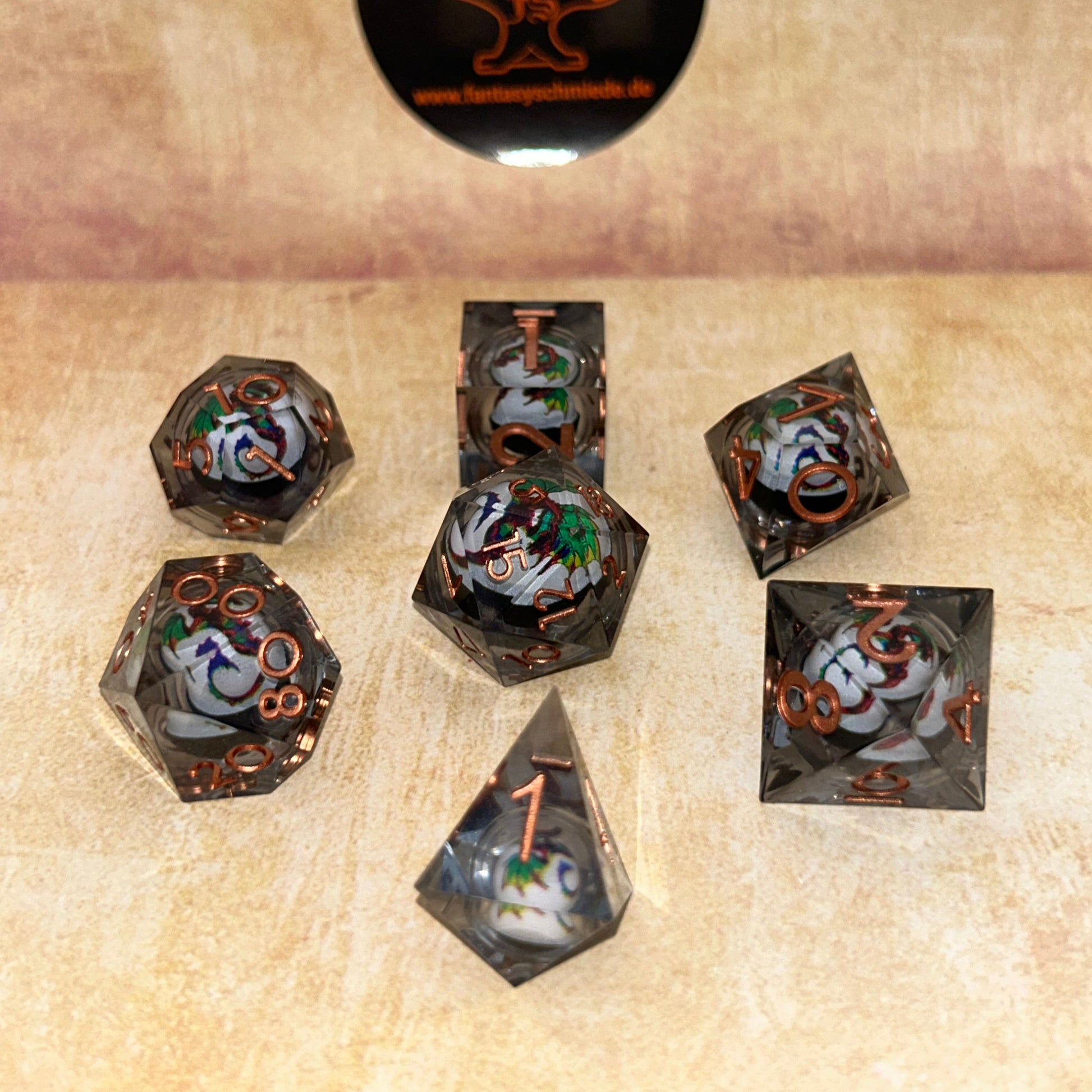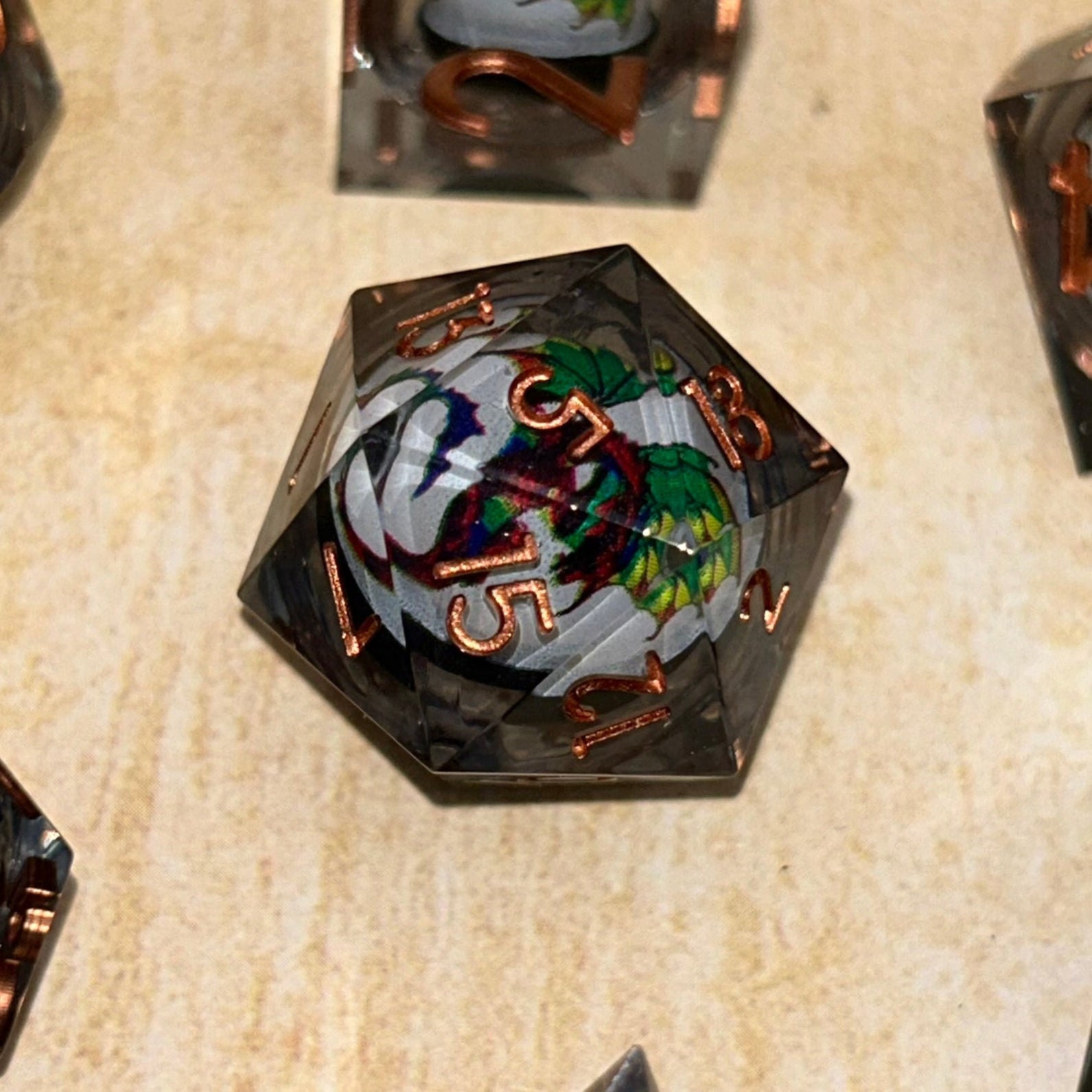 Jeder Wurf mit diesem Artefakt trägt die doppelte Macht des Drachen: das lodernde Feuer der Zerstörung und die unbezwingbare Kraft des Waldes. Ob am Spieltisch oder als Sammlerstück – der Flammenlaub-Drache ist mehr als ein Würfel: Er ist ein Bote uralter Legenden.