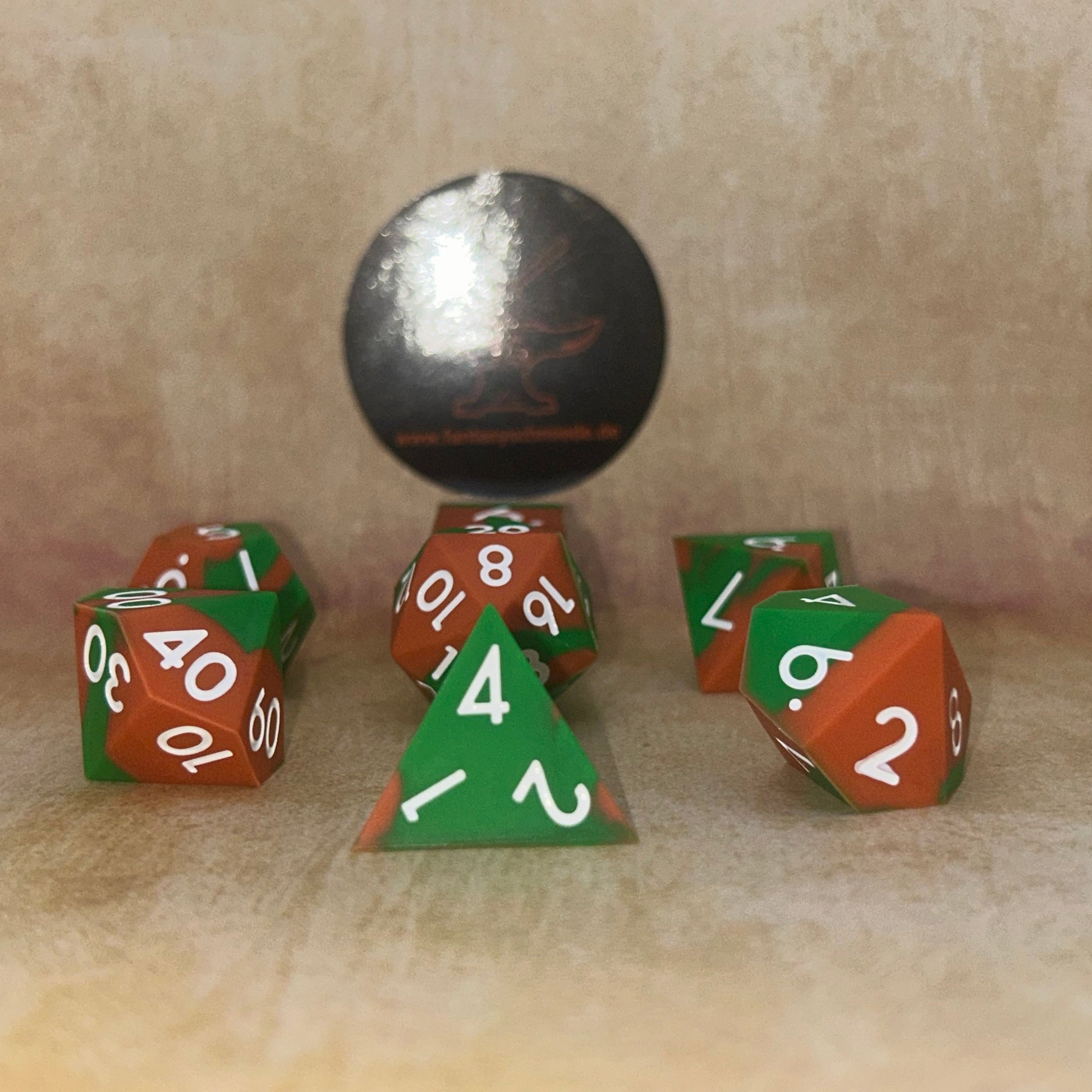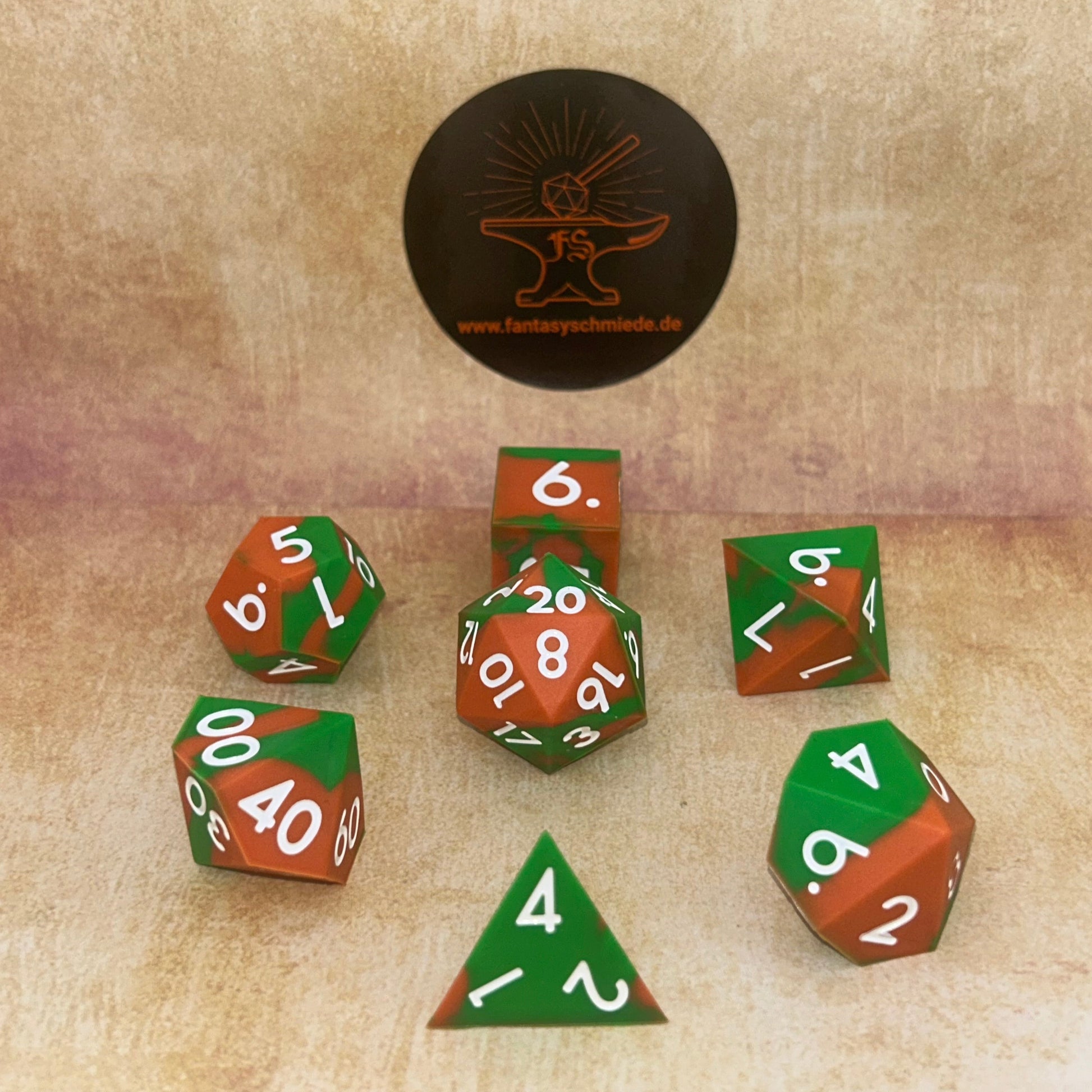 Jeder Wurf erzählt von der Wildnis: Unser Silikonwürfel Laune der Natur vereint sattes Grün mit erdigem Braun – wie ein Spaziergang durch einen geheimnisvollen Wald. Das flexible Silikon sorgt für ein angenehmes Würfelgefühl und macht ihn zu einem besonderen Blickfang am Spieltisch.
