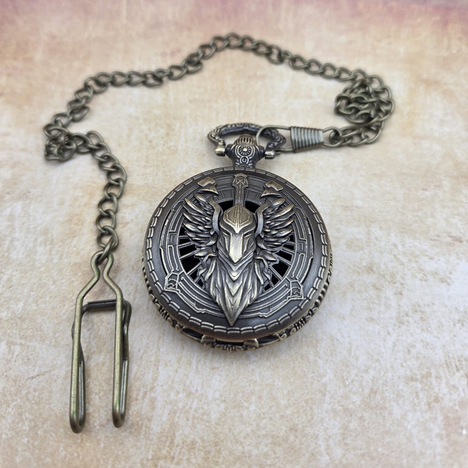 Schreite in die Schlacht und bestimme dein Schicksal mit der Paladin’s Oath-Würfeltaschenuhr – ein edles Accessoire, das die strahlende Macht eines heiligen Ritters mit der Präzision eines Würfelwurfs vereint. Diese Uhr ist mehr als ein Zeitmesser – sie ist dein persönlicher Begleiter auf jedem Abenteuer, der den Glanz und die Entschlossenheit eines Paladins verkörpert.